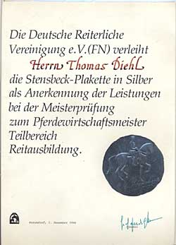 -1986 Meisterprüfung mit Auszeichnung der FN.